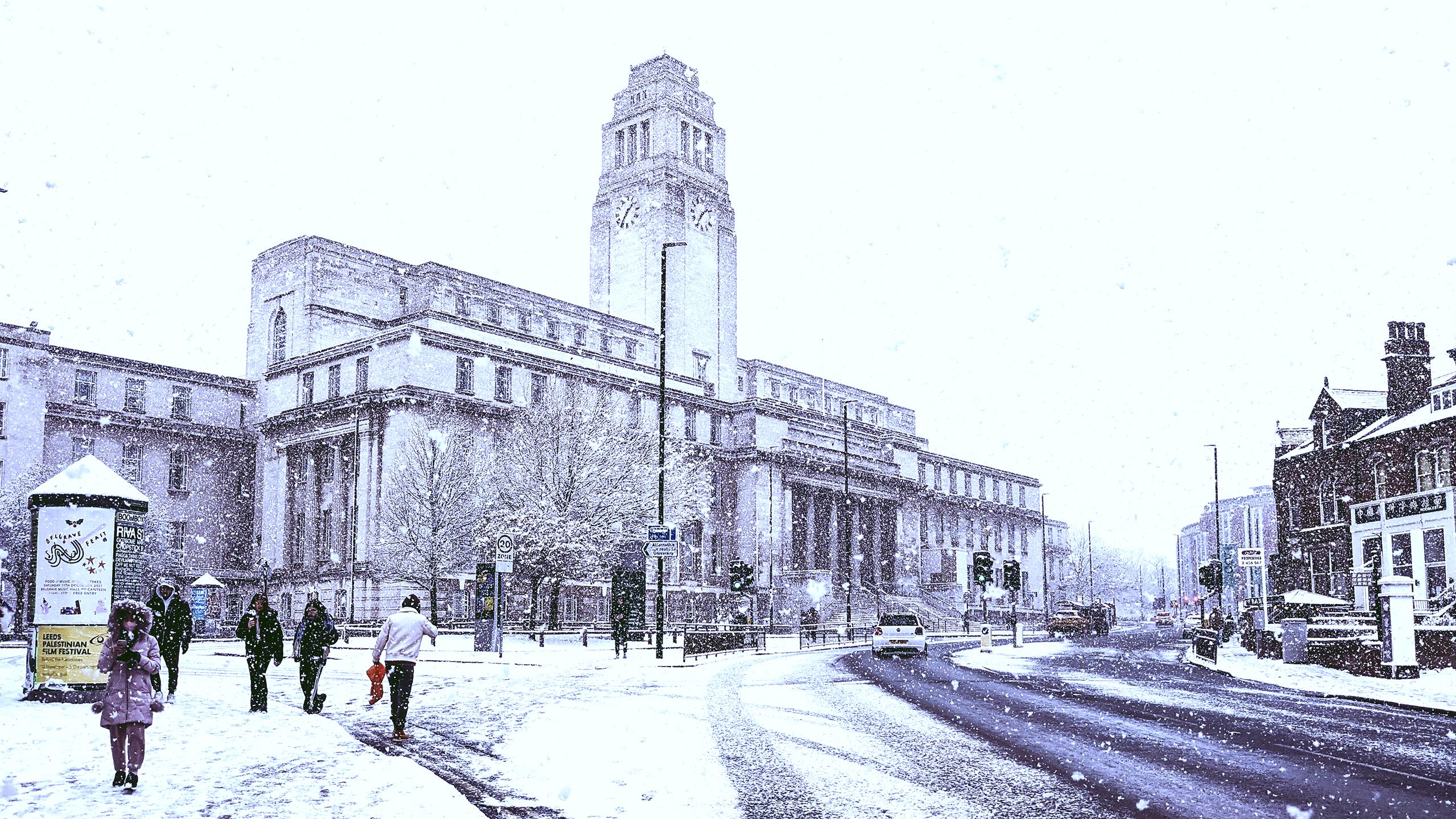 The festive season started early here at Leeds when our campus sparkled under an early snowfall. Naturally, we dashed out to take some photos for you. Scroll down and take a look at Leeds in the snow – and share your memories of winter in Leeds.