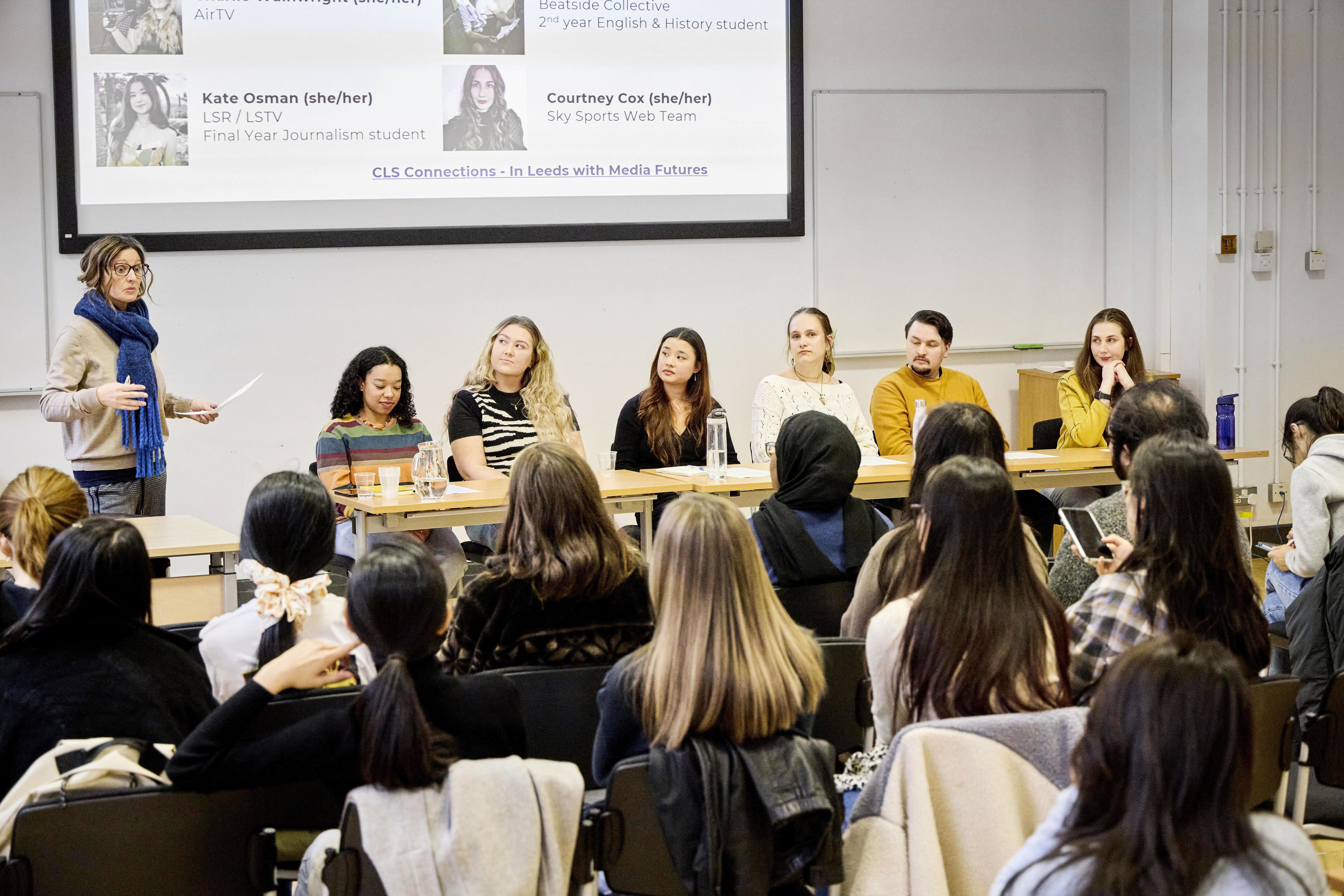 The final event of the year, held on 12 March 2025, brought together both the Creative Life Storis and Media Futures programmes in a collaborative session that attracted an impressive turnout of students. The event featured a panel of University of Leeds alumni working across the media and creative industries, who shared valuable insights and advice.